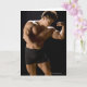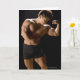 Male bodybuilder flexing muscles, front view, card