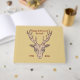 This guestbook for your events and parties has a brown male deer head with black etchings on his face and large antlers outlined in dark red on a light brown background. Customise your name, event and dates with the templates.