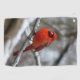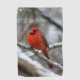 A bright red Cardinal adds a pop of colour on a dreary snowy day.