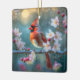 Male Cardinal in the Moonlight Cherry Blossoms Ceramic Ornament