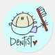 Stick figure male dentist design stickers with a blue background and text that reads "Dentist" with a red heart!