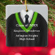 Personalised double-sided graduation keepsake ornament, decorated in black and green school gown colours and necktie for that special male senior. Many other colour combinations available for males and females. Edit custom text on front and back in the easy Zazzle text editor.