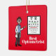 This is a fun gift for the male eye doctor you know. You can change and personalise this text on the front and back as you wish. Due to the style, you can only buy this design on SQUARE ornaments. Makes a great gift for birthday, Father's Day, Christmas or for World Optometry Day, annually on March 23. Designed by Sheila Cicchi, Brownielocks.com. All Rights Reserved.