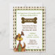 Celebrate your dog's birthday with a pet party blowout. This cute invitation has a pup with a Olive coloured tie, holding his ear up. Invite all of your puppy's playmates and friends. Add your party details for the perfect birthday invitation. Brown bone has the words Pet Party.