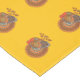 This table cloth is a golden yellow colour with male Thanksgiving turkeys with fanned tail feathers in browns and oranges standing in Autumn leaves.