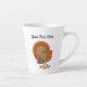 This Latte mug has a male turkey with its tail feathers spread standing in a pile of Fall leaves. Its feathers are in Autumn colours of brown, orange, blue, and golden yellows. Customise your text with the template.