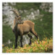 Male wild alpine ibex, capra ibex, or steinbock standing in Alps mountain, France