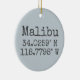 Malibu California Latitude and Longitude map coordinates in distressed urban font