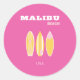 Malibu, Malibu Beach, Travel Art, Preppy, Pink Classic Round Sticker