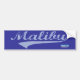 Malibu in a hip stylish distressed swash text. You can virtually feel the relaxed California beach paradise in this original design bumper sticker. Californian lifestyle encapsulated in a design. This swash style in powder blue reading Malibu with ocean blue background simply sums up the laid back attitudes and athletic bodies catching rays on a SoCal beach.