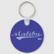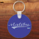 Malibu in a hip stylish distressed swash text. You can virtually feel the relaxed California beach paradise in this original design key chain. Californian lifestyle encapsulated in a design. This swash style in powder blue reading Malibu with ocean blue background simply sums up the laid back attitudes and athletic bodies catching rays on a SoCal beach.