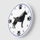 A dog lover clock featuring the silhouette of a Belgian Malinois, with paw prints marking the quarters.