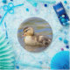 This is a portrait of a mallard duckling that is swimming in a pond at Downing Park in Newburgh, NY. The morning sun and reflection of the sun on the trees made an awesome colour on the water. This image was taken by Debbie Quick of Debs Creative Images. To see more photography by Debbie, check out her website at: www.debscreativeimages.com