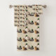 This contemporary, decorative bath towel set presents an artistic repeating pattern of Mallard Ducks. The male ducks can be identified by their iridescent green heads and yellow beaks. The females have lovely feathers in shades of brown and gold with orange beaks.
