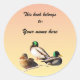 These bookplate stickers feature three mallard ducks. The two males have iridescent green heads, mostly white bodies and yellow beaks. The female's feathers are shades of brown and gold and her beak is orange. They are bathed in a golden sunset light. Terrific for identifying the books in your own collection, they will also make a wonderful gift for book lovers! Customise with your personal name.