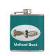 Two Mallard ducks, a drake and a female, swim together in an Alaskan pond. Text reading "Mallard Duck" also appears. The Mallard, Anas platyrhynchos, breeds throughout the temperate and subtropical Americas, Europe, Asia, and North Africa, and has been introduced to New Zealand and Australia. Male birds have a bright green or blue head, while the female's is light brown. The gregarious Mallard lives in wetlands and eats water plants. The Mallard is the ancestor of most domestic ducks. The Mallard was one of the many bird species originally described by Linnaeus in his 18th century work, Systema Naturae, and still bears the first binomial name it was given. The name is derived from the Old French malart or mallart "wild drake", although its ultimate derivation is unclear. It may be related to an Old High German masculine proper name Madelhart, clues lying in the alternate English forms "maudelard" or "mawdelard." Mallards frequently interbreed with their closest relatives in the genus Anas, such as the American Black Duck, and also with species more distantly related, for example the Northern Pintail, leading to various hybrids that may be fully fertile. This is quite unusual, and indicates that the Mallard evolved very rapidly during the Late Pleistocene. Mallards appear to be closer to their Indo-Pacific relatives than to their American ones judging from biogeography. Considering mtDNA D-loop sequence data, they may have evolved more probably than not in the general area of Siberia; Mallard bones rather abruptly appear in food remains of ancient humans and other deposits of fossil bones in Europe, without a good candidate for a local predecessor species.The large ice age paleosubspecies which made up at least the European and west Asian populations during the Pleistocene has been named Anas platyrhynchos palaeoboschas. The Mallard is 20–26 inches long (of which the body makes up around two-thirds), has a wingspan of 32–39 inches, and weighs 1.6–3.5 lbs. The size of the Mallard varies clinally, and birds from Greenland, although larger than birds further south, have smaller bills and are stockier. It is sometimes separated as subspecies, the Greenland Mallard (A. p. conboschas).The Mallard is a rare example of both Allen's Rule and Bergmann's Rule in birds. Bergmann's Rule, which states that polar forms tend to be larger than related ones from warmer climates, has numerous examples in birds. Allen's Rule says that appendages like ears tend to be smaller in polar forms to minimise heat loss, and larger in tropical and desert equivalents to facilitate heat diffusion, and that the polar taxa are stockier overall. Examples of this rule in birds are rare, as they lack external ears. However, the bill of ducks is very well supplied with blood vessels and is vulnerable to cold. Breeding males are unmistakable, with a bright bottle-green heads, a black rear end and a yellowish orange (can also contain some red) bill tipped with black (as opposed to the black/orange bill in females). They have a white collar which demarcates the head from the purple-tinged brown breast, grey brown wings, and a pale grey belly. The dark tail has white borders. The female Mallard is a mottled light brown, like most female dabbling ducks, and has buff cheeks, eyebrow, throat and neck with a darker crown and eye-stripe. Upon hatching, the plumage colouring of the duckling is yellow on the underside and face (with streaks by the eyes) and black on the backside (with some yellow spots) all the way to the top and back of the head. Its legs and bill are also black. As it nears a month in age, the duckling's plumage will start becoming drab, looking more like the female (though its plumage is more streaked) and its legs will lose their dark grey colouring. Two months after hatching, the fledgling period has ended and the duckling is now a juvenile. Between three to four months of age, the juvenile can finally begin flying as its wings are fully developed for flight (which can be confirmed by the sight of purple speculum feathers). Its bill will soon lose its dark grey colouring and whether it is male or female can finally be distinguished by three factors. The bill colouring is yellow in males, black and orange for females. The breast feathers are reddish-brown for males, brown for females. The centre tail feather of male birds (called a drake feather) is curved; females have straight feathers. During the final period of maturity leading up to adulthood (6–10 months of age), the plumage of female juveniles remains the same while the plumage of male juveniles slowly changes to its recognisable colours. This plumage change also applies to adult Mallard males when they transition in and out of their non-breeding (eclipse) plumage at the beginning and the end of the summer moulting period. The adulthood age for Mallards is 14 months and the average life expectancy is 20 years. A noisy species, the male has a nasal call, and a high-pitched whistle, while the female has a deeper quack stereotypically associated with ducks. The Mallard is widely distributed across the Northern Hemisphere, North America from southern and central Alaska to Mexico, the Hawaiian Islands, and across Eurasia, from Iceland and southern Greenland and parts of Morocco (North Africa) in the west, Scandinavia to the north, and to Siberia, Japan, and China in the east. It is strongly migratory in the northern parts of its breeding range, and winters farther south. For example, in North America it winters south to Mexico, but also regularly strays into Central America and the Caribbean between September and May. The Mallard inhabits a wide range of habitat and climates, from Arctic Tundra to subtropical regions. It is found in both fresh- and salt water wetlands, including parks, small ponds, rivers, lakes and estuaries, as well as shallow inlets and open sea within sight of the coastline. They are attracted to bodies of water with aquatic vegetation