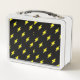This is a standard metal lunchbox that appears to work just fine. We designed this box ourselves with an uploaded photo and custom text on the front and back. It looks absolutely beautiful except the front of the lunchbox is not centered like it shows in the photo. The print borders don't align with the inset flat part of the box where the preview photo online showed it perfectly centered in there. The back looks nice and centered though.