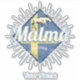 Malmo city with flag, Skane County in Sweden, vintage flag and moose design souvenir. Retro Malmo with Swedish flag design for travel in Scandinavia and Scania or holiday. Malmö with moose design and urban for Sweden holidays.