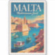 Malta retro vector travel design. Malta is a stunning Mediterranean island nation famous for its turquoise waters, ancient fortresses, and beautifully preserved cities. With a blend of European and Middle Eastern influences, it offers sunny beaches, rich history, and vibrant coastal life.