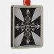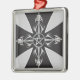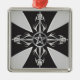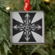 Black Maltese cross features a silver pentagram centre that is surrounded by 4 swords with flames.