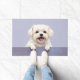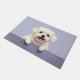 The soft pastel lavender-blue background adds a delicate and calming touch, perfect for welcoming entryways. Designed with extra space at the top and bottom, it allows easy personalisation with names, welcome messages, or custom text—making it ideal for unique dog-themed doormats and thoughtful gifts.