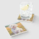 The coasters are gorgeous, a quality feel and heavy weight. They look like a precious archeological find. A rustic stone juxtaposed with a modern floral black and white print. I like the way the print goes slightly imperfect on the cut stone edges giving them a kind-of natural beauty.