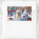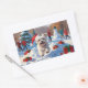 Maltese Dog Running in Snow with Christmas Hat Rectangular Sticker