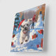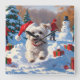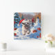 Maltese Dog Running in Snow with Christmas Hat Square Wall Clock