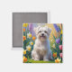 Maltese Dog Spring Flowers Painting Magnet