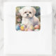 Maltese Dog with Easter Eggs Holiday Square Sticker