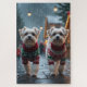 This festive design captures the joyful spirit of the holiday season, featuring an adorable dogs.Nestled in a winter wonderland, complete with a decorated Christmas tree, and beautifully wrapped presents. Snowflakes gently fall, adding a magical touch to the scene, while the vibrant colours of the holiday decorations create a warm and cheerful atmosphere.