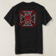 Our creepy flame head skull, a maltese cross and tattoo graphic shapes are combined in this frightening and unusual graphic design. There is a fun flaming skull head on the back right shoulder.