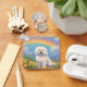 A personalised Maltese rainbow bridge memorial keychain with a painting of a happy Maltese on a serene heavenly hill with a beautiful rainbow overhead. Symbolising the Maltese has passed the rainbow bridge to doggy heaven. Personalise it with your own Maltese dog's name or any other text on the back side of the keychain. Makes a wonderful memorial gift for any Maltese dog lover.