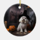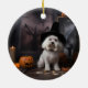 Maltese Pumpkins Halloween Scary Ceramic Ornament