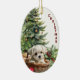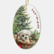 Maltese Puppy Wicker Basket Christmas Ceramic Ornament
