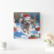 Malti Tzu Running in Snow with Christmas Hat Square Wall Clock