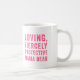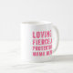 Show how proud you are to be a mama bear with this mug! It reads, "loving, fiercely protective mama bear" in a pink, vintage-style font.
