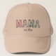 Customisable MAMA trucker hat featuring doodle letters with watercolor backgrounds and editable text field.