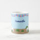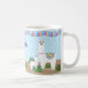 Celebrate the new mother with this cute mama and baby llama mug. The two llamas stand among succulents against a sage green polka dot background adorned by a festive banner on top. Great for the new mother of a baby boy. Available with matching products.