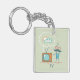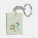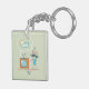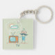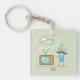 A man with a moustache standing next to his television. This design looks really effective on these Keychain
