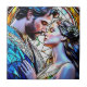 This stunning piece captures a beautiful moment between two individuals through vibrant colours, bold shapes, and intricate details reminiscent of stained glass artistry.