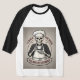 This is a raglan-style T-shirt featuring a humourous graphic design. The design showcases a skeleton wearing a chef’s hat and apron, holding a cup of coffee.