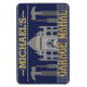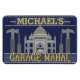 This funny, personalised design is perfect for decorating your man cave. It says, "[Your Name] Garage Mahal" and shows an outline of the Taj Mahal with hammers, screwdrivers and a little car that looks like it's parked in the middle. Easily add your name to the top. The colours are blue, grey and a golden yellow.
