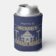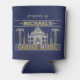 This funny, customised can cooler is perfect for your man cave. It says, "property of [Your Name] Garage Mahal" and shows an outline of the Taj Mahal with hammers, screwdrivers and a little car that looks like it's parked in the middle. Easily add your name. The colours are blue, grey and golden yellow, and the design repeats on the back.