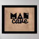 A man cave quote poster has bold black text on distressed sepia tone background for wall art decor in home or office.