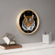 This dart board features a orange black and white tiger with yellow eyes .There is a bright beautiful text in orange that says man cave.With black back ground. Back ground colour can be change.This Realistic artwork is great for someone who loves to hunt, hunting guide or lodge, sportsman, outdoors man or animal lover or pup or bar.