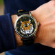 This watch features a orange black and white tiger with yellow eyes .There is a bright beautiful text in orange that says man cave.With black back ground. Back ground colour can be change.This Realistic artwork is great for someone who loves to hunt, hunting guide or lodge, sportsman, outdoors man or animal lover.