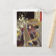 This colour print was created by the famous Japanese artist Utagawa Kuniyoshi in the 19th century. It's titled: "A man confronted with an apparition of the Fox goddess". Many of Utagawa's prints were themed around ghosts, apparitions and spectres. I'm not sure who the man in the print is, but he's probably a samurai (Japanese warrior). He's shielding his eyes with one hand while holding a long bow in the other. His kimono (clothes) are very colourful, and he's also draped in some kind of fur. Utagawa has signed the artwork (and perhaps written a few sentences) in Kanji characters and Hiragana (Japanese writing).