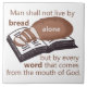 Ceramic Tile with Bible verse "Man does not live by bread alone, but by every word that comes from the mouth of God." Matthew 4:4. This design will work on any light-coloured item.