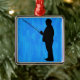 Stylish design of a silhouette of a man fishing with his fishing rod against a background of abstract blue art resembling the ocean or the sky. A perfect gift or design for a guy who enjoys fishing as a sport or hobby.